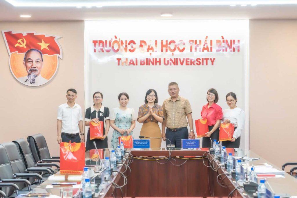 Về phía Trường Đại học Thái Bình có PGS.TS. Phạm Quốc Thành – Bí thư Đảng ủy, Hiệu trưởng cùng TS. Phạm Thị Ánh Nguyệt – Phó Hiệu trưởng; TS. Hà Văn Đổng – Phó Hiệu trưởng và các Thầy, Cô là lãnh đạo các đơn vị.