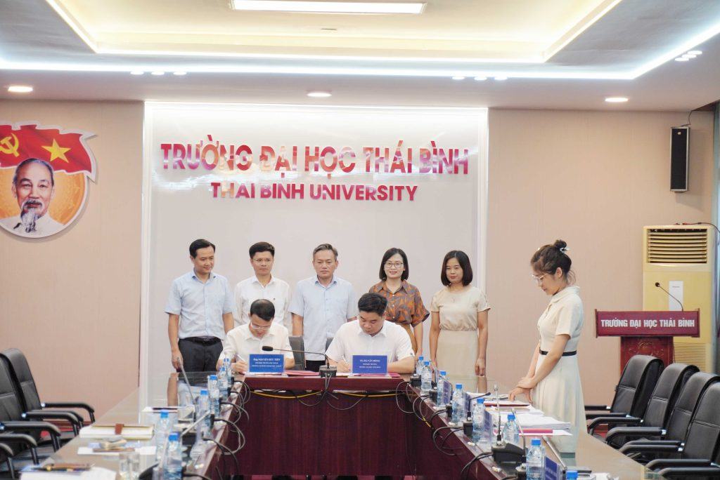 Trên cơ sở nội dung Biên bản ghi nhớ về hợp tác đào tạo đã được lãnh đạo 2 đơn vị thông qua, TS. Hà Văn Đổng, Phó Hiệu trưởng Trường Đại học Thái Bình và Ông Nguyễn Đức Tiến, Phó Hiệu trưởng phụ trách Trường Cao đẳng Ngoại ngữ – Công nghệ và Truyền thông đã chính thức ký kết biên bản ghi nhớ với các nội dung chính: